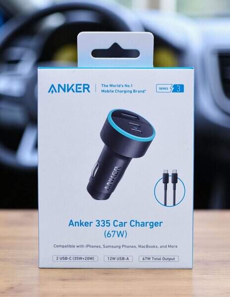 شاحن سيارة أنكر 335 (قدرة 67 واط) – حزمة – أسود